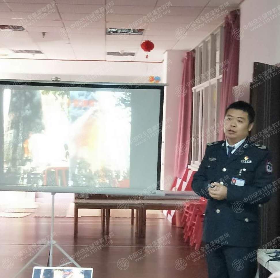 2018年10月16日,武汉市智慧光幼儿园特邀安全健康教育网的教员星展消防安全知识培训。