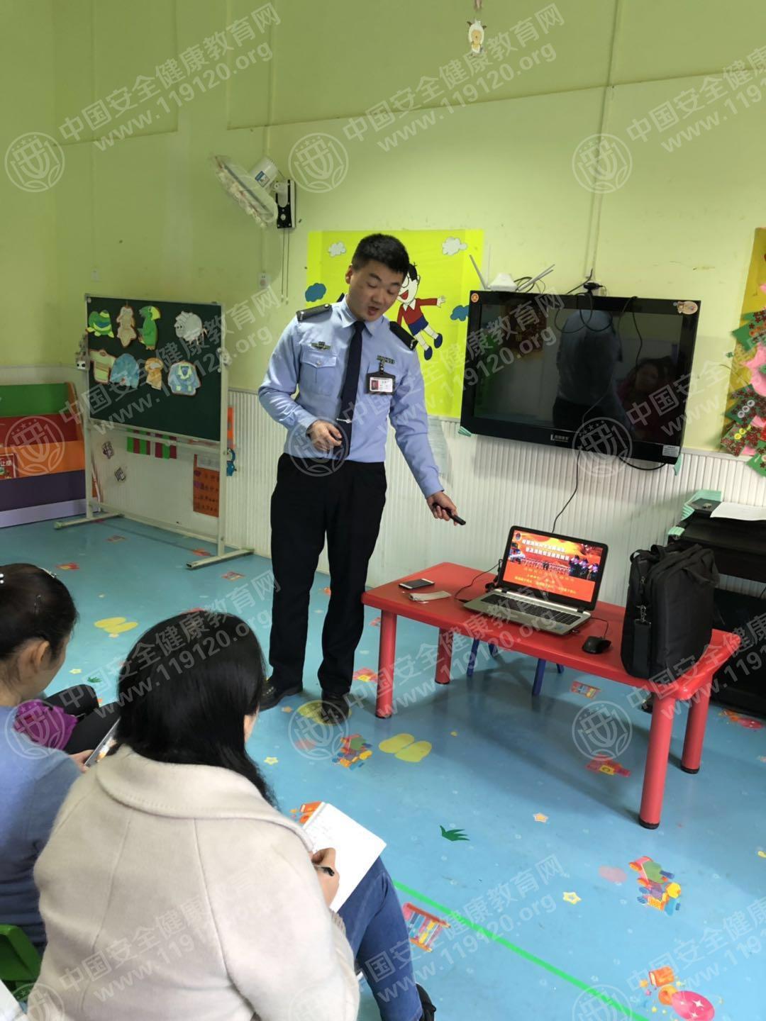 为进一步推进消防安全宣传工作,提高幼儿园职工消防安全意识,2019年3月25日武汉市毛坦港湾幼儿园特邀安全健康教育网熊钊教官给全体教职工开展消防安全知识培训。