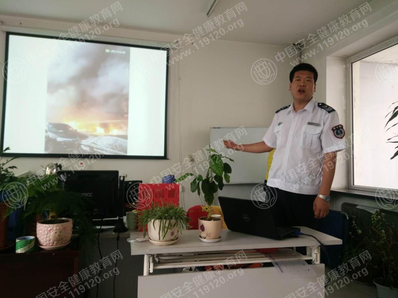 2017年6月6日,蛟河人民财产保险邀请安全健康教育网田阳教官开展消防安全知识培训讲座。