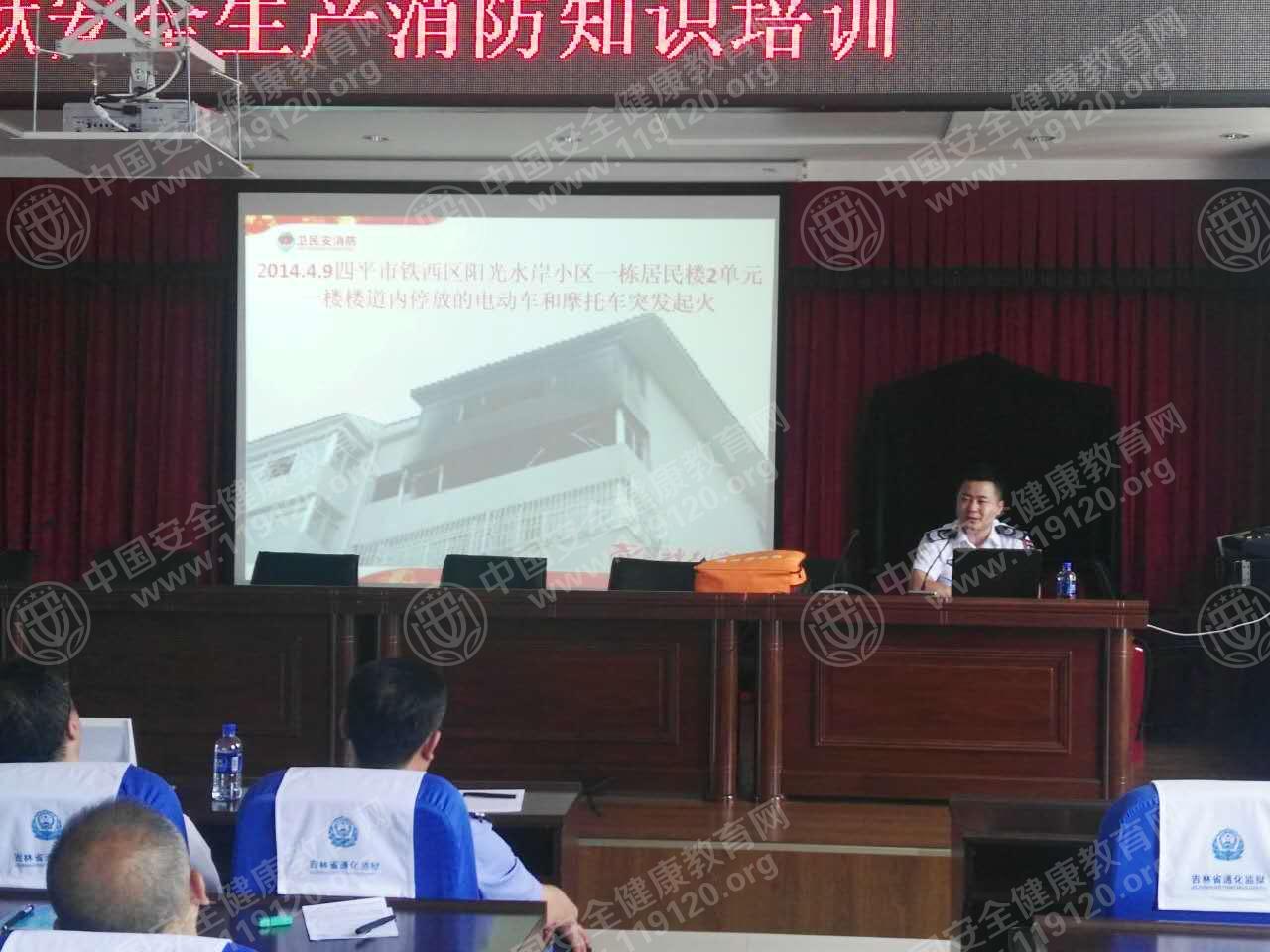 2017年6月8日,吉林省通化监狱邀请安全健康教育网的教官开展消防讲座。赵教官通过常见的火灾案例,结合图片和视频的方式向大家介绍了火灾的危害,提高了全体警员的安全防范意识,增加了灭火和逃生自救的能力。