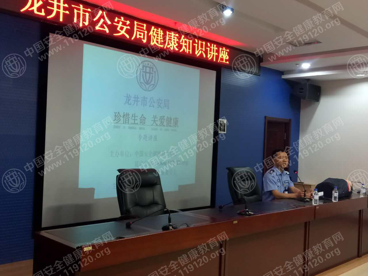 2017年7月7日,延边州龙井市公安局邀请安全健康教育网的刘超老师开展安全健康知识讲座,内容包括突发事故公共卫生安全事件的自救互救、雾霾的危害及防护、常见职业病的预防改善及亚健康综合治理等知识。