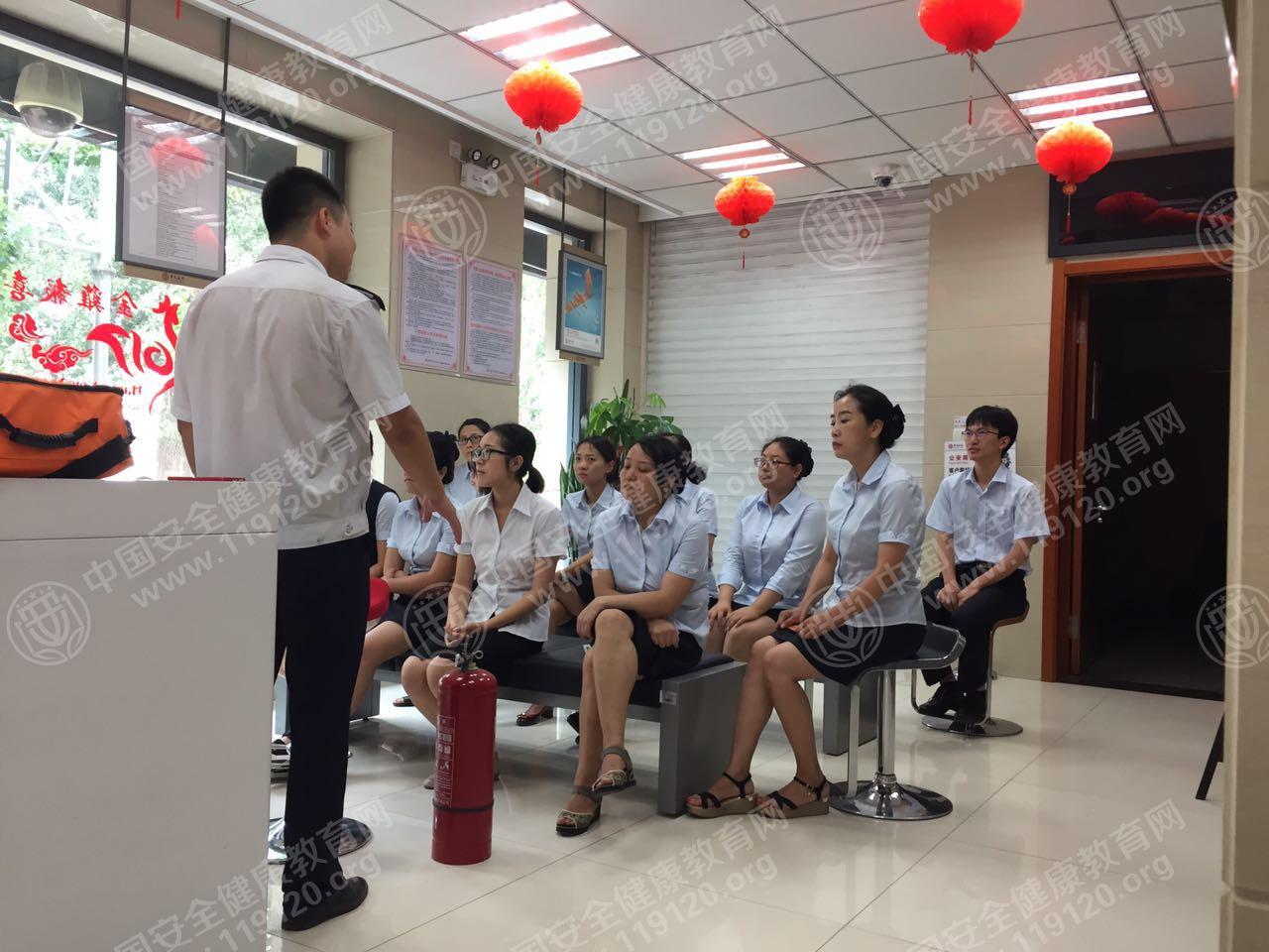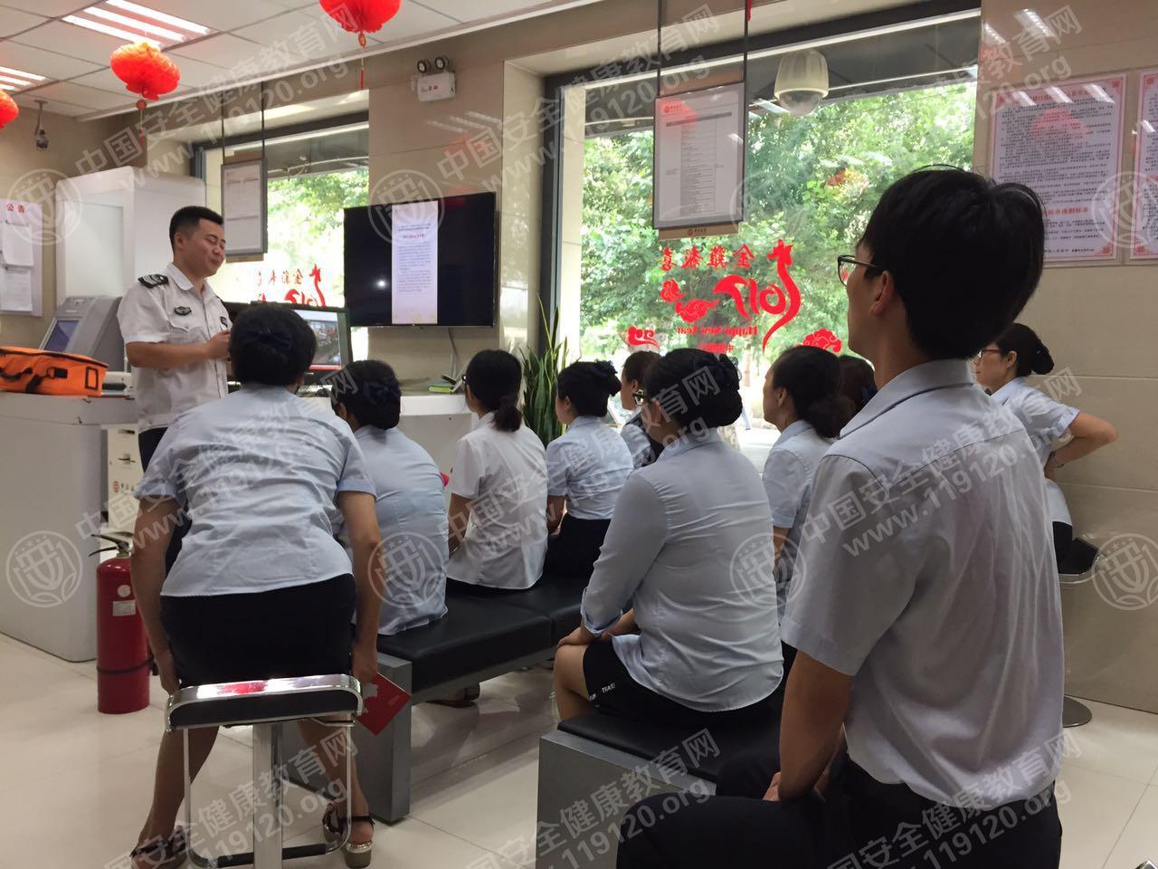 2017年7月18日吉林省四平市中国银行英城支行邀请安全健康教育网曹教员为在职营业员开展消防安全知识培训。