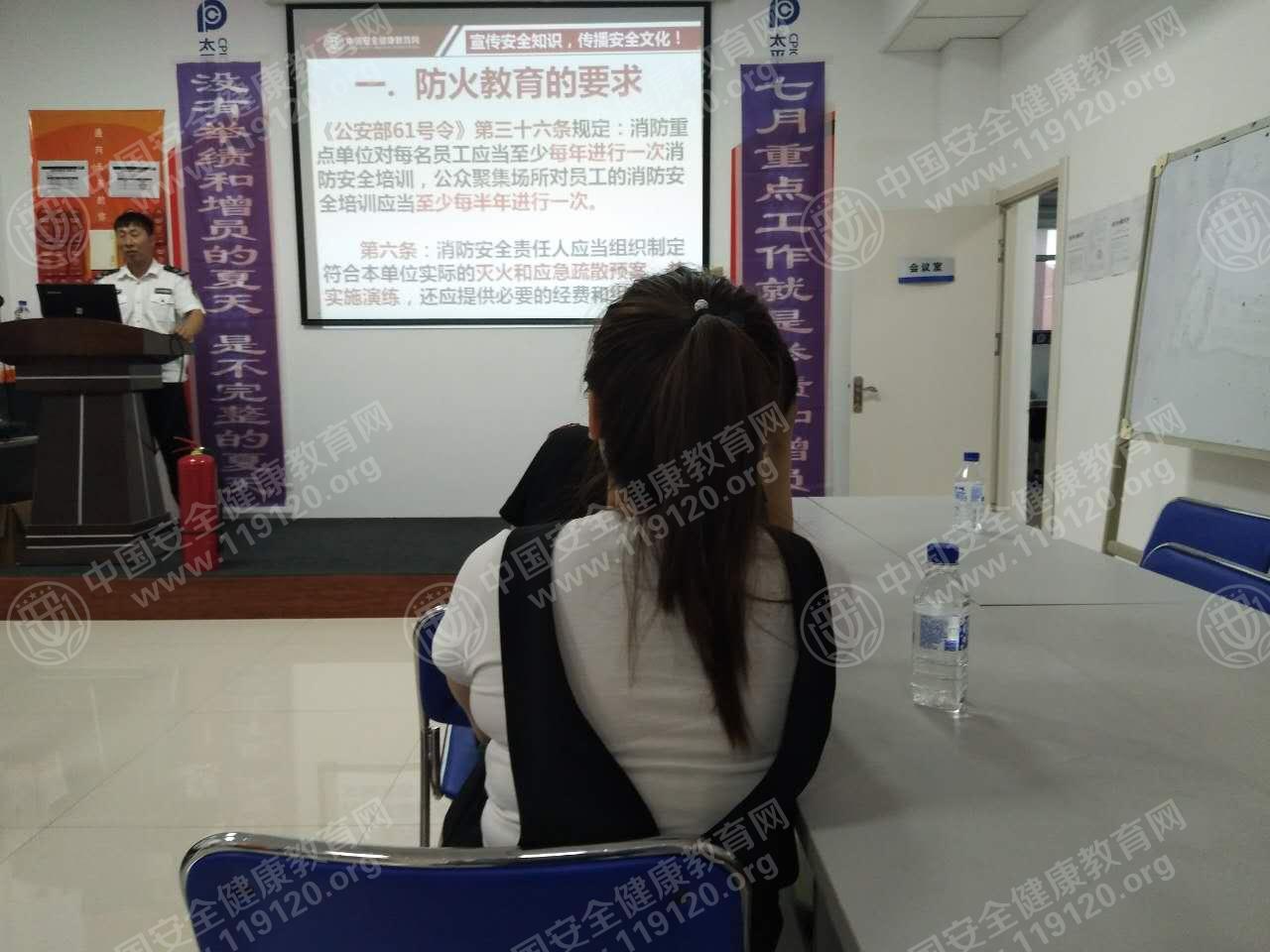 2017年7月20日吉林省长春市双阳区太平洋财险举办消防安全知识讲座,邀请了来自安全健康教育网的周立平教官,对机关部分员工进行了消防安全知识培训。