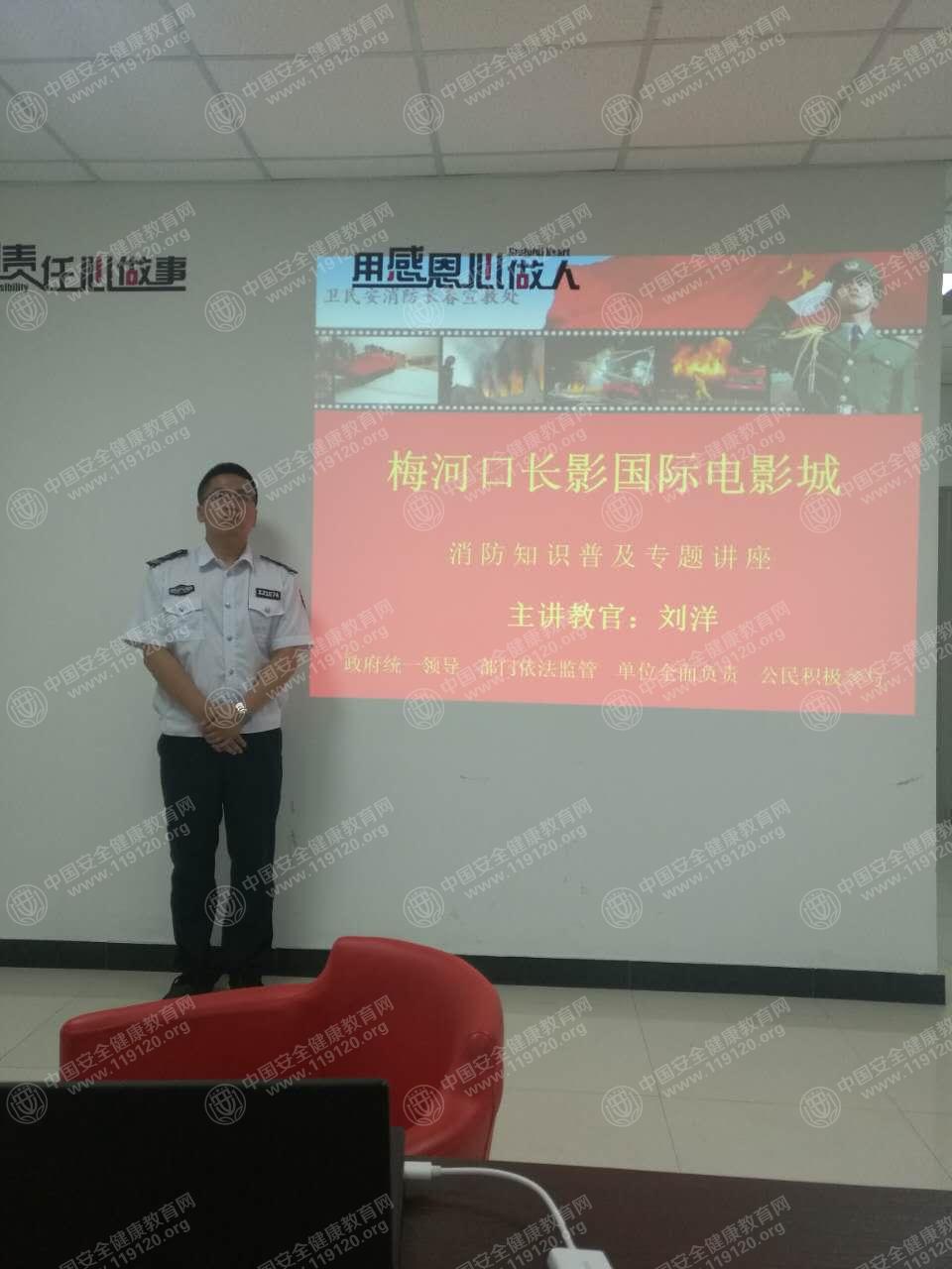 2017年7月21日吉林省梅河口市长影国际电影城举办消防安全知识讲座,邀请了来自安全健康教育网的教官,对机关部分员工进行了消防安全知识培训。