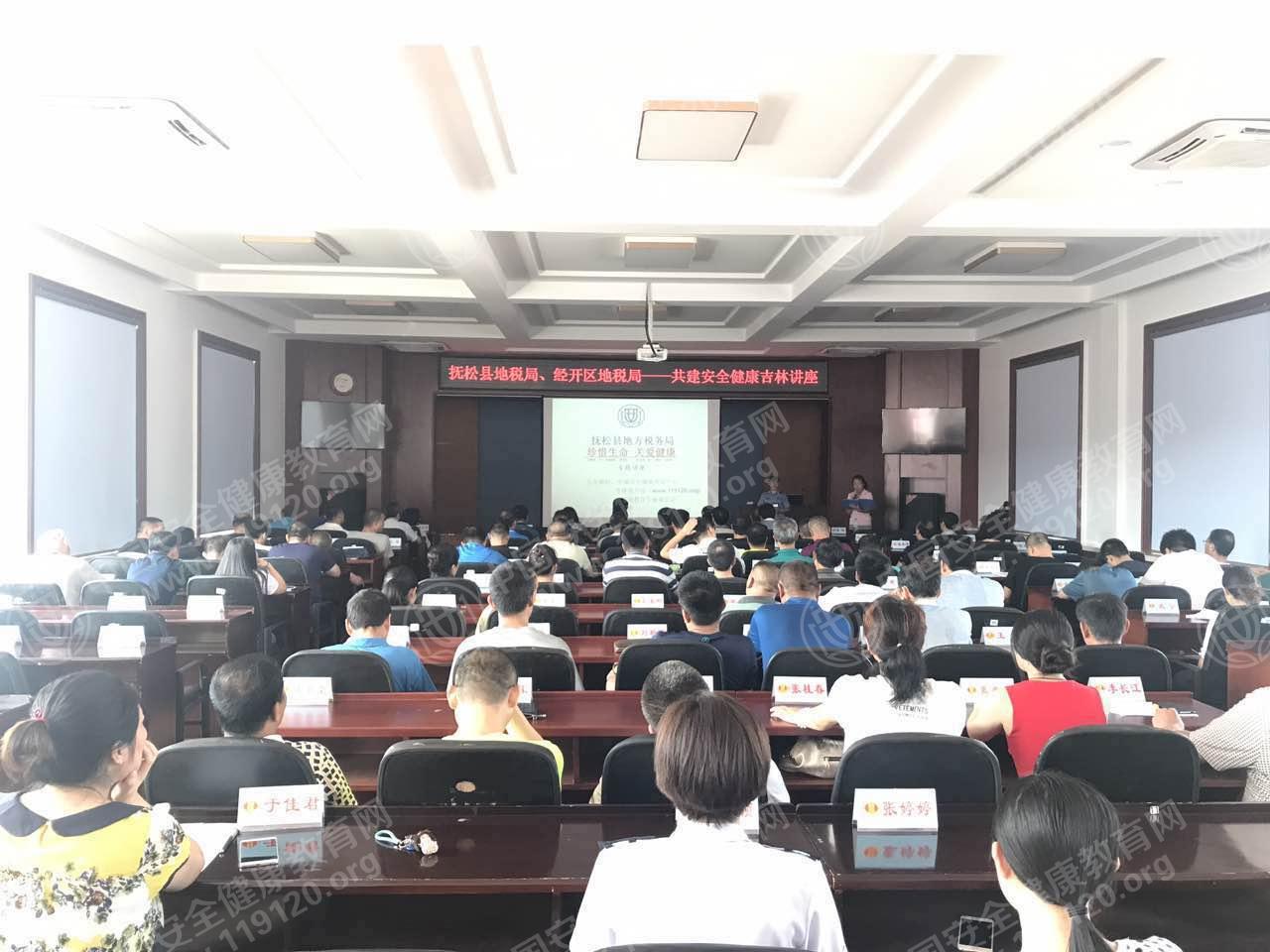 2017年8月4日吉林省抚松县地税局邀请了安全健康教育网的孙艳老师主讲,此次讲座孙艳老师以紧急救护和身心健康为主题,包括胸外压、人工呼吸,急救技能培训、心脑血管疾病和职业病防治等内容。培训现场