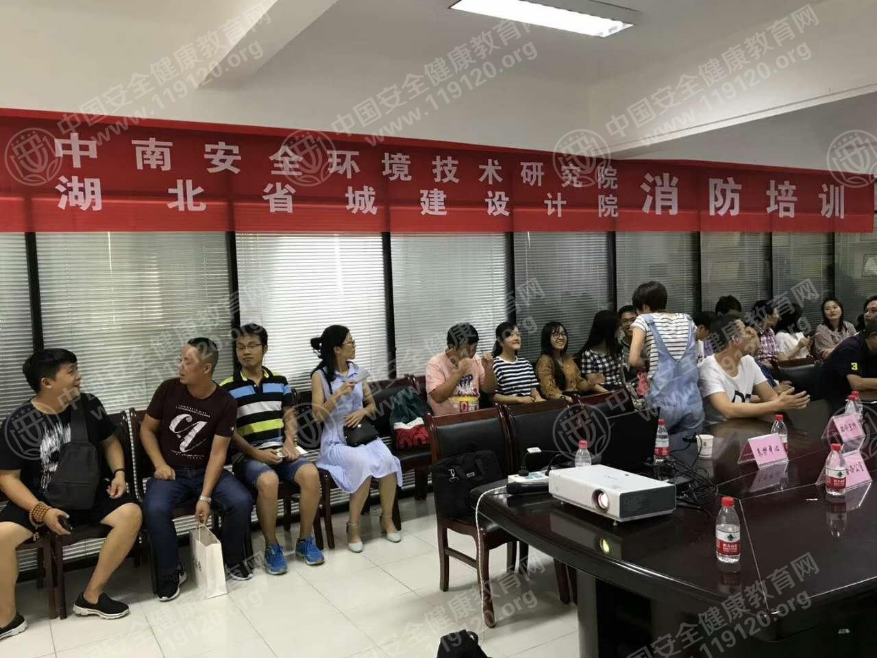 2017年9月13日,中南环境安全技术研究院与湖北省城建设计院联合举办消防安全培训特邀安全健康教育网的教员主任熊灵专现场指导。