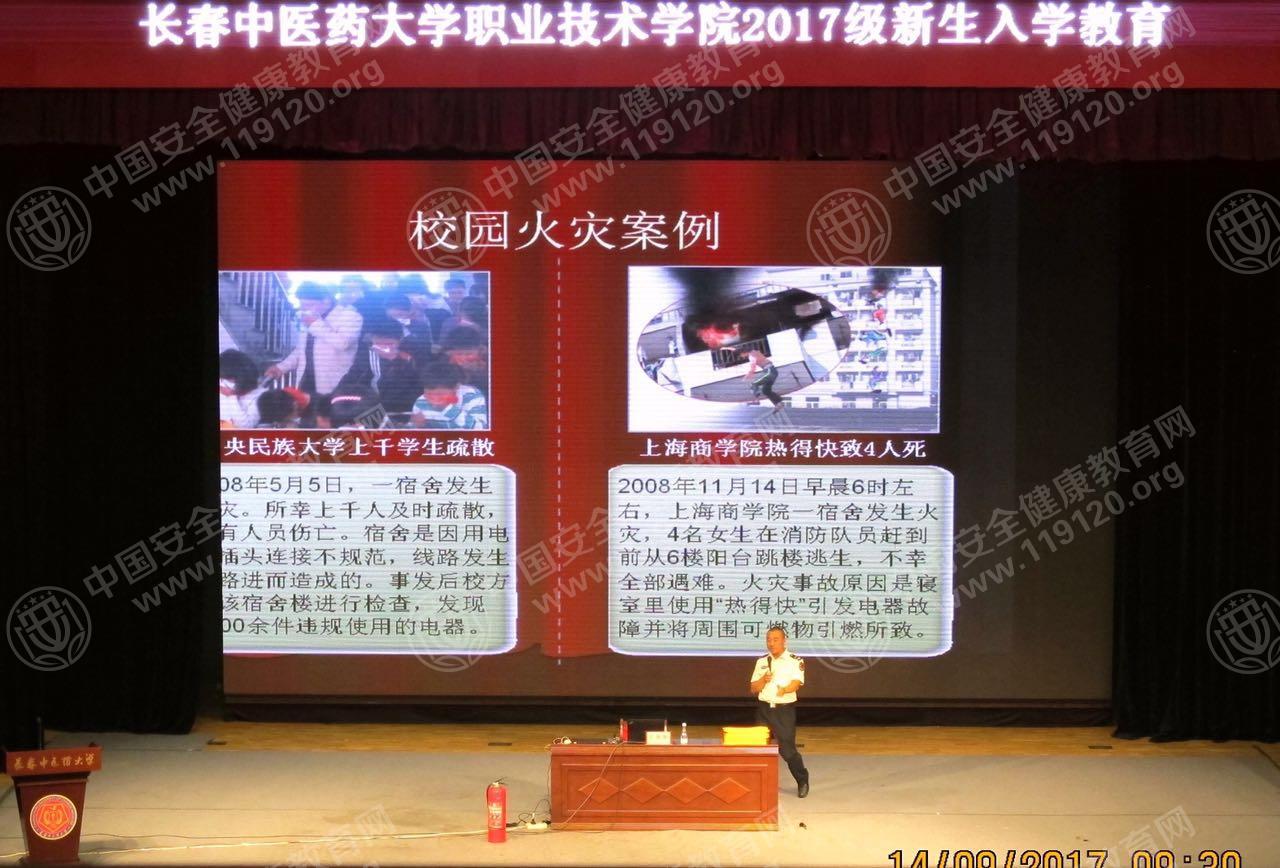2017年9月18日吉林省长春市中医药大学成教学院特邀安全健康教育网王振超教官在其会议室进行了一场生动的消防安全知识讲座。